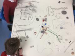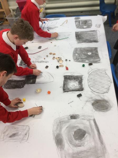 Drawing with charcoal,